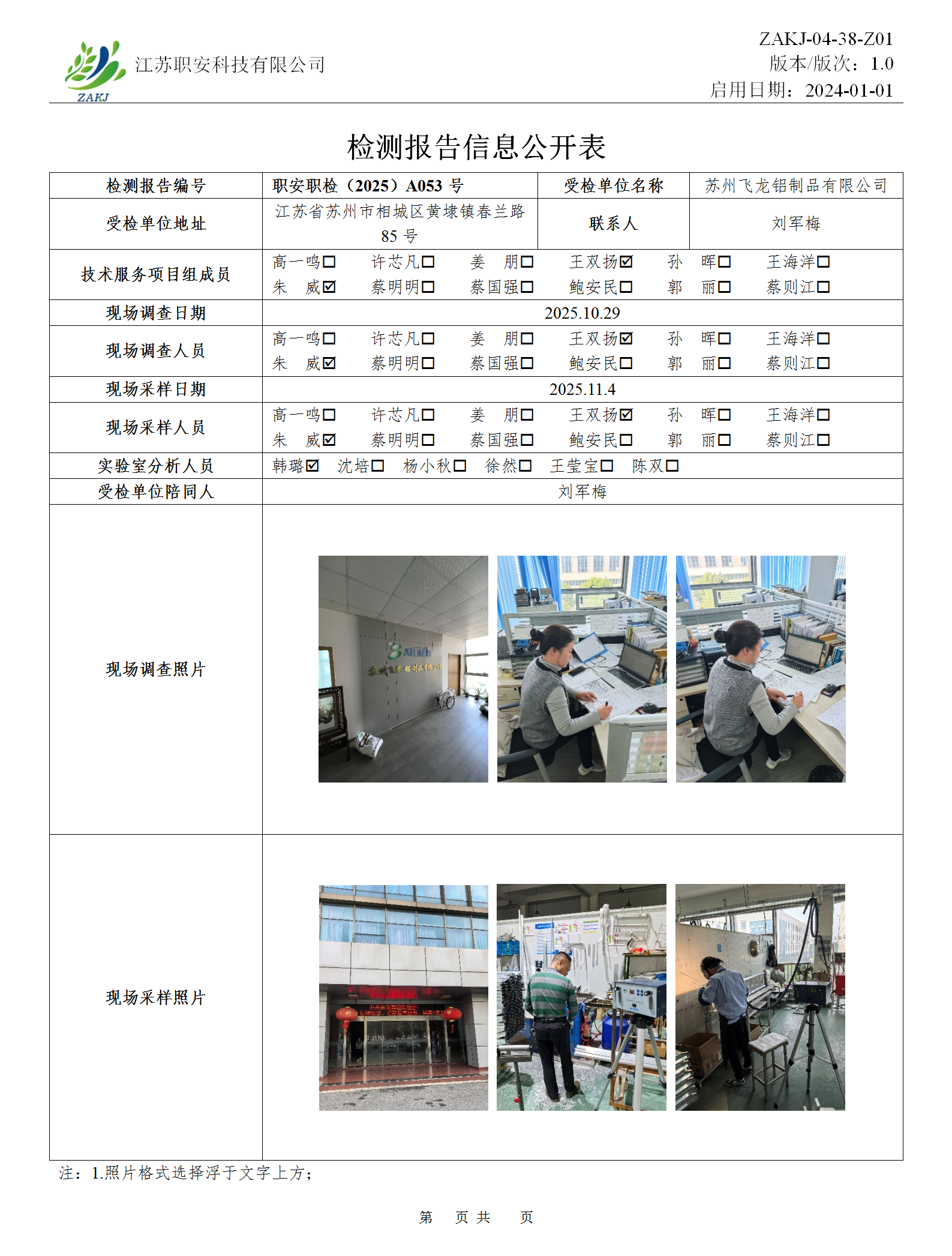 檢測報告公示