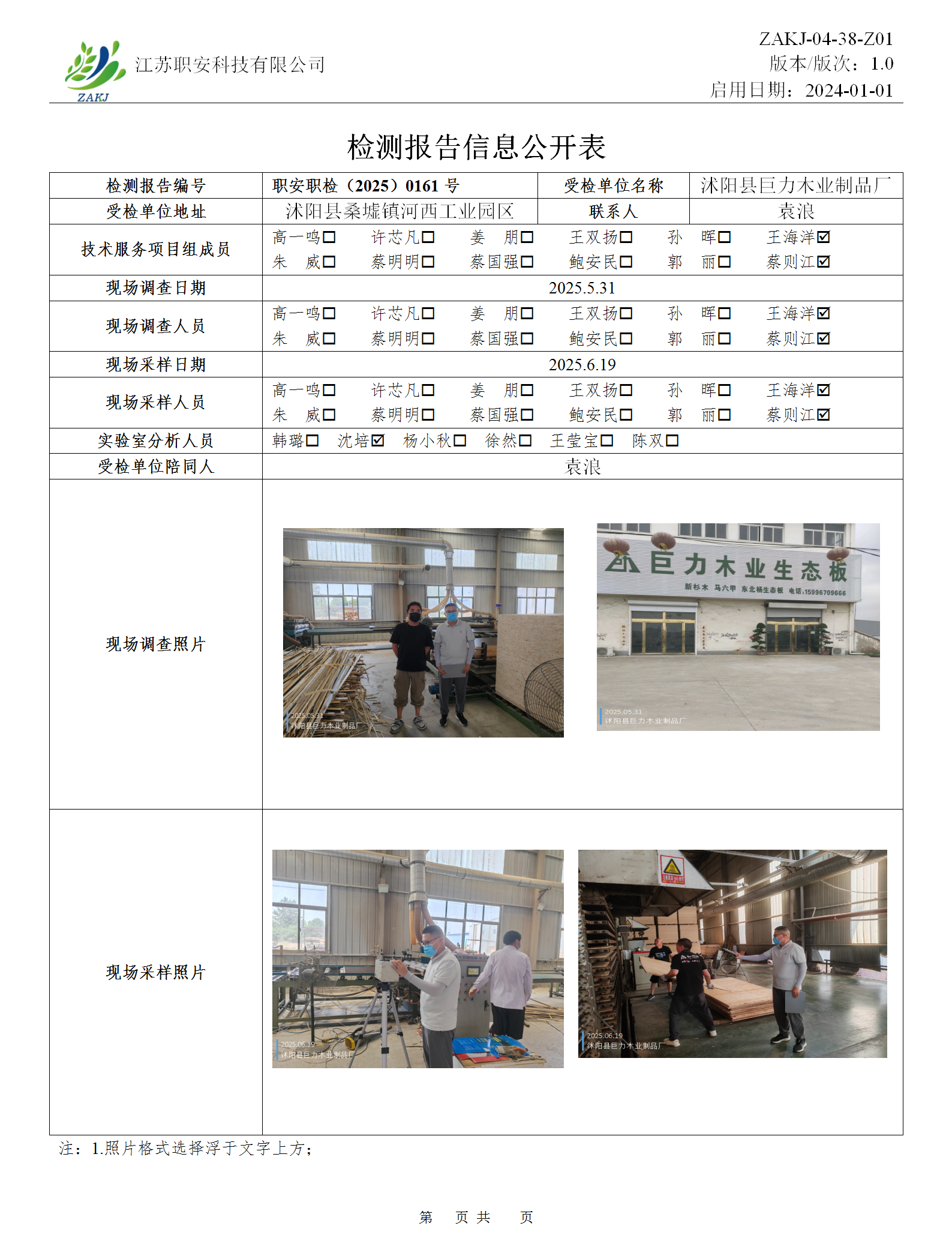 檢測報告公示
