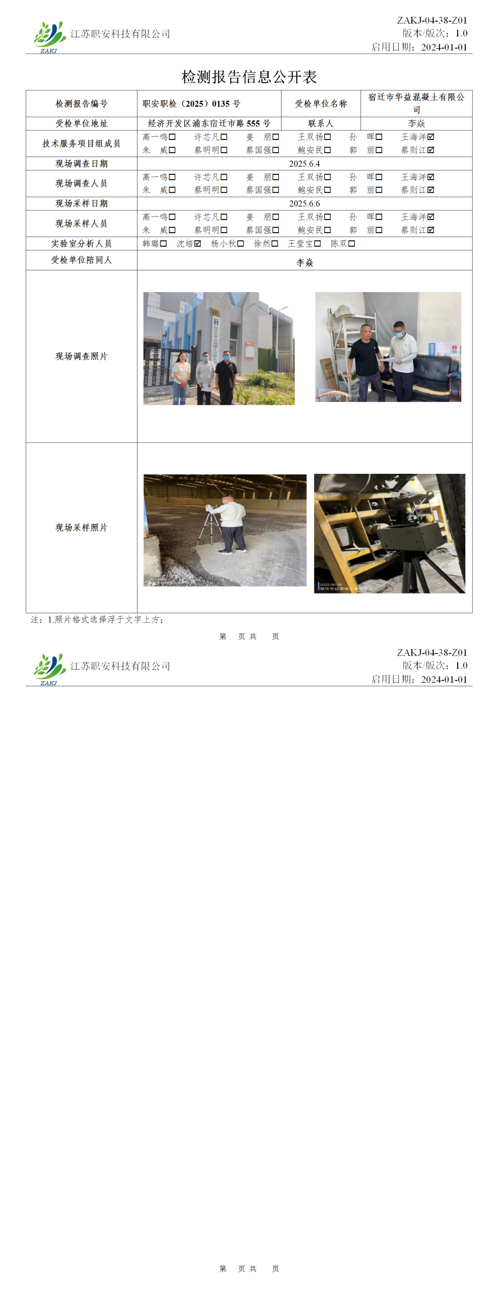 檢測報告公示