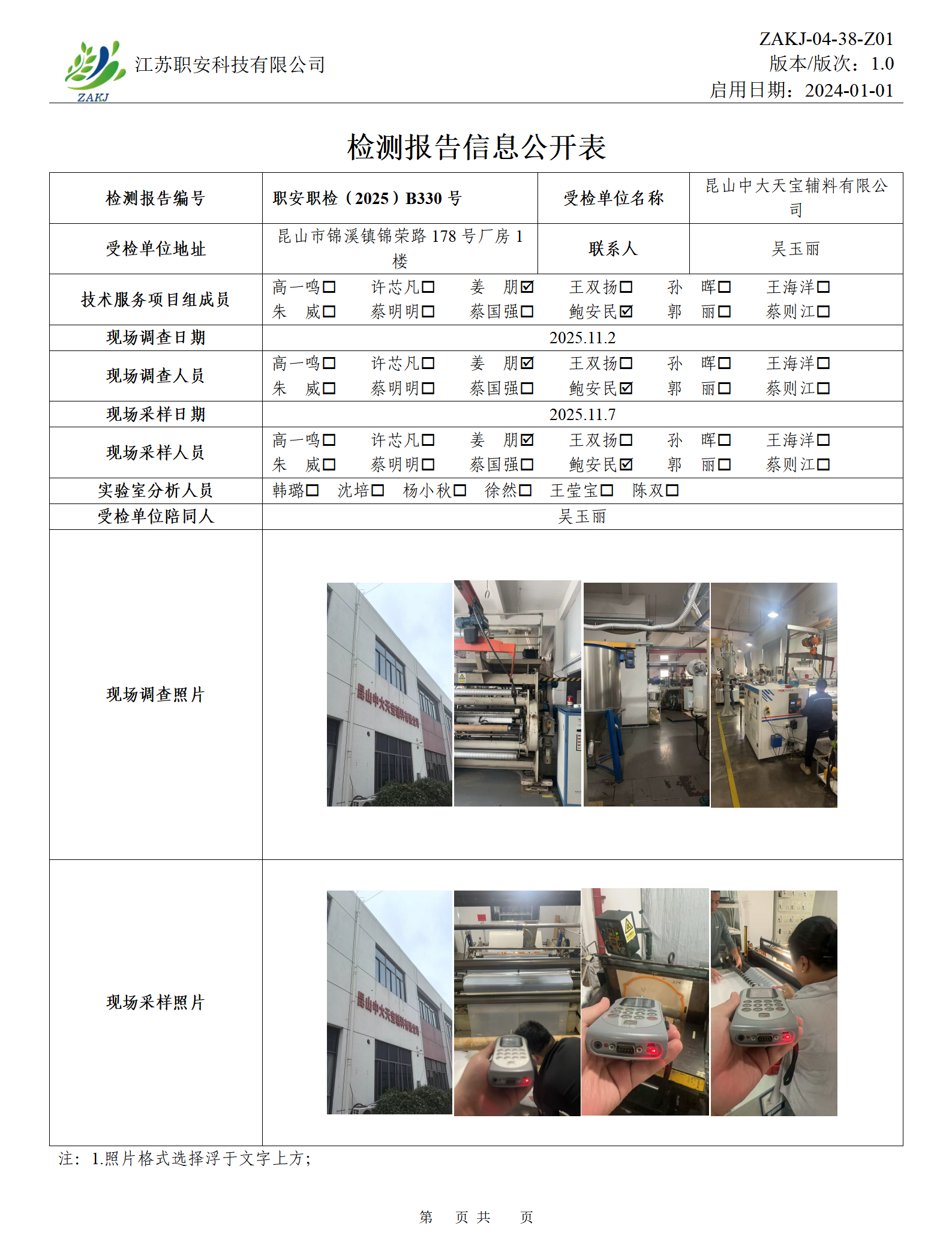 檢測報告公示