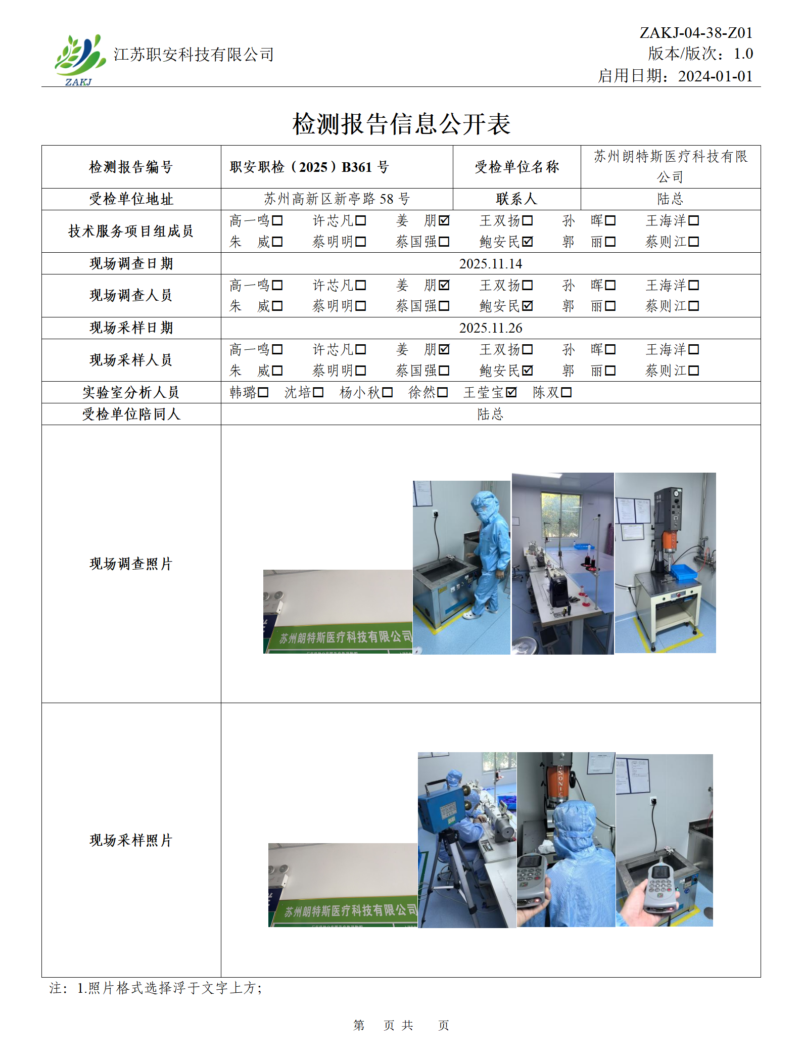 檢測報告公示
