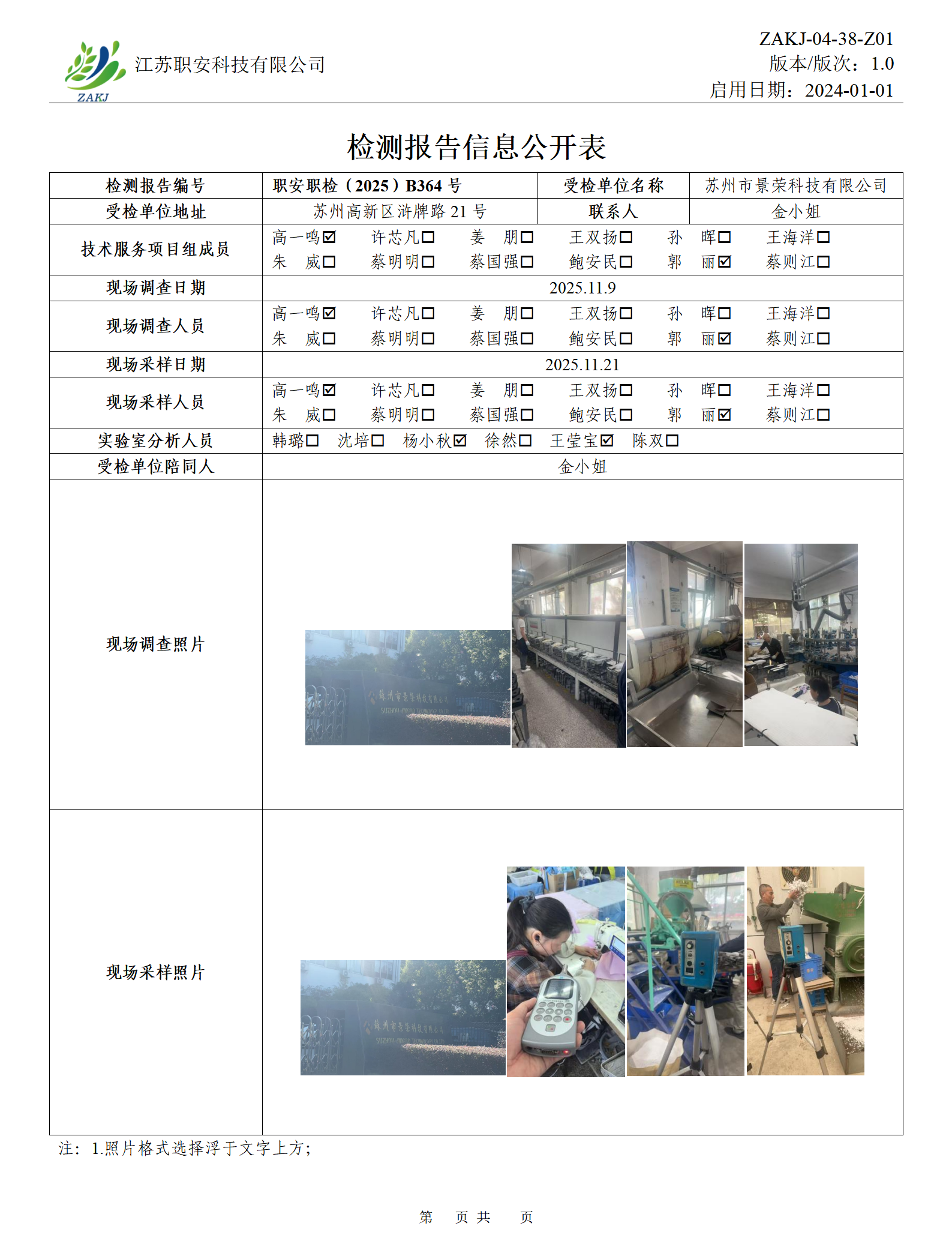 檢測報告公示