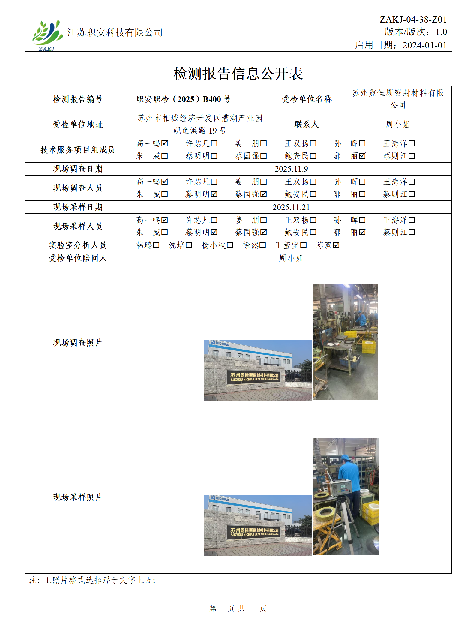 檢測報告公示