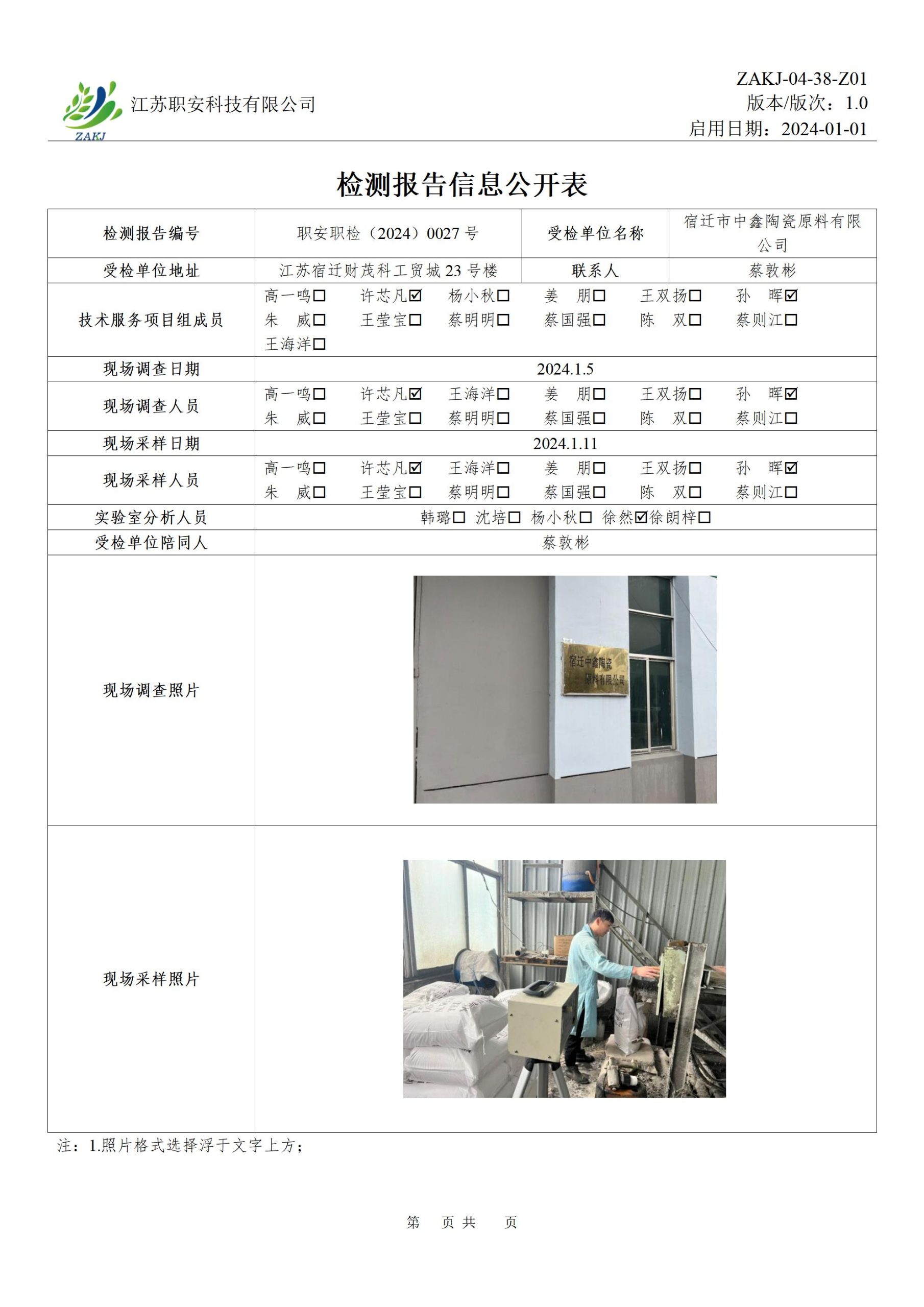 檢測報告公示