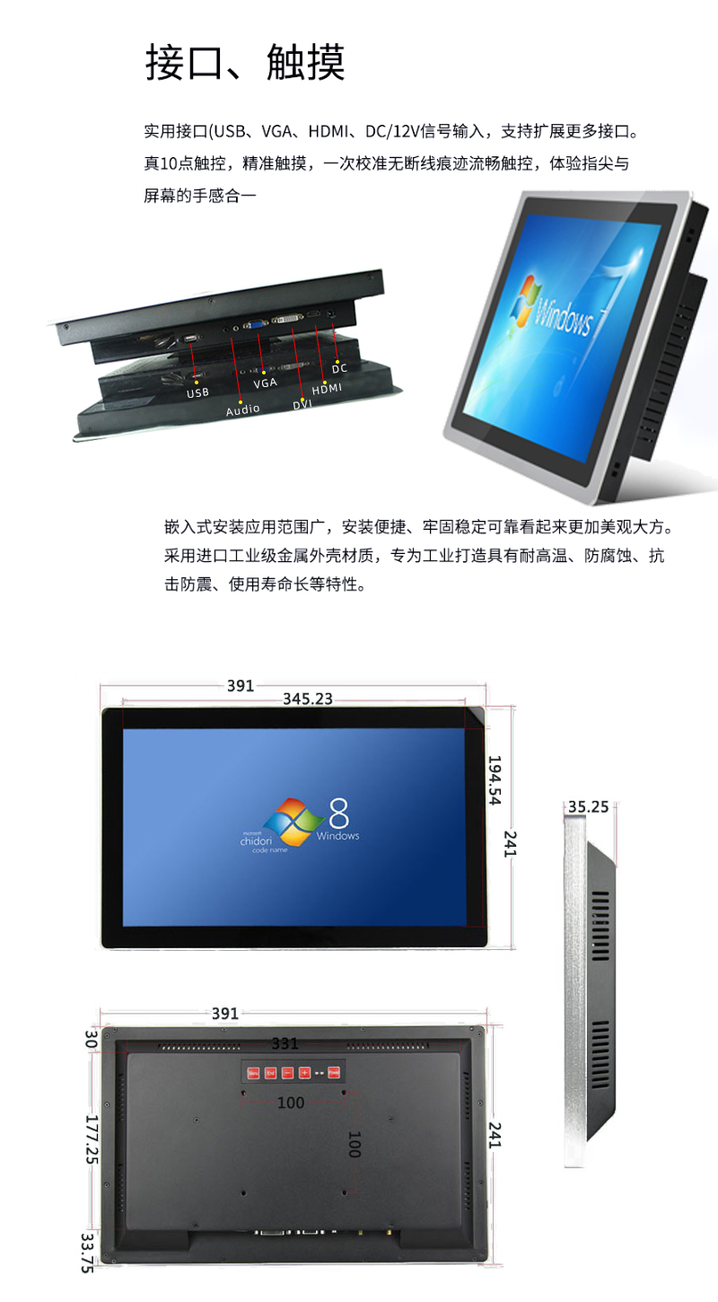 15.6 寸開放式框架觸摸顯示器支持 Windows 7/8/10/XP/Linux/MAC OS/Android
