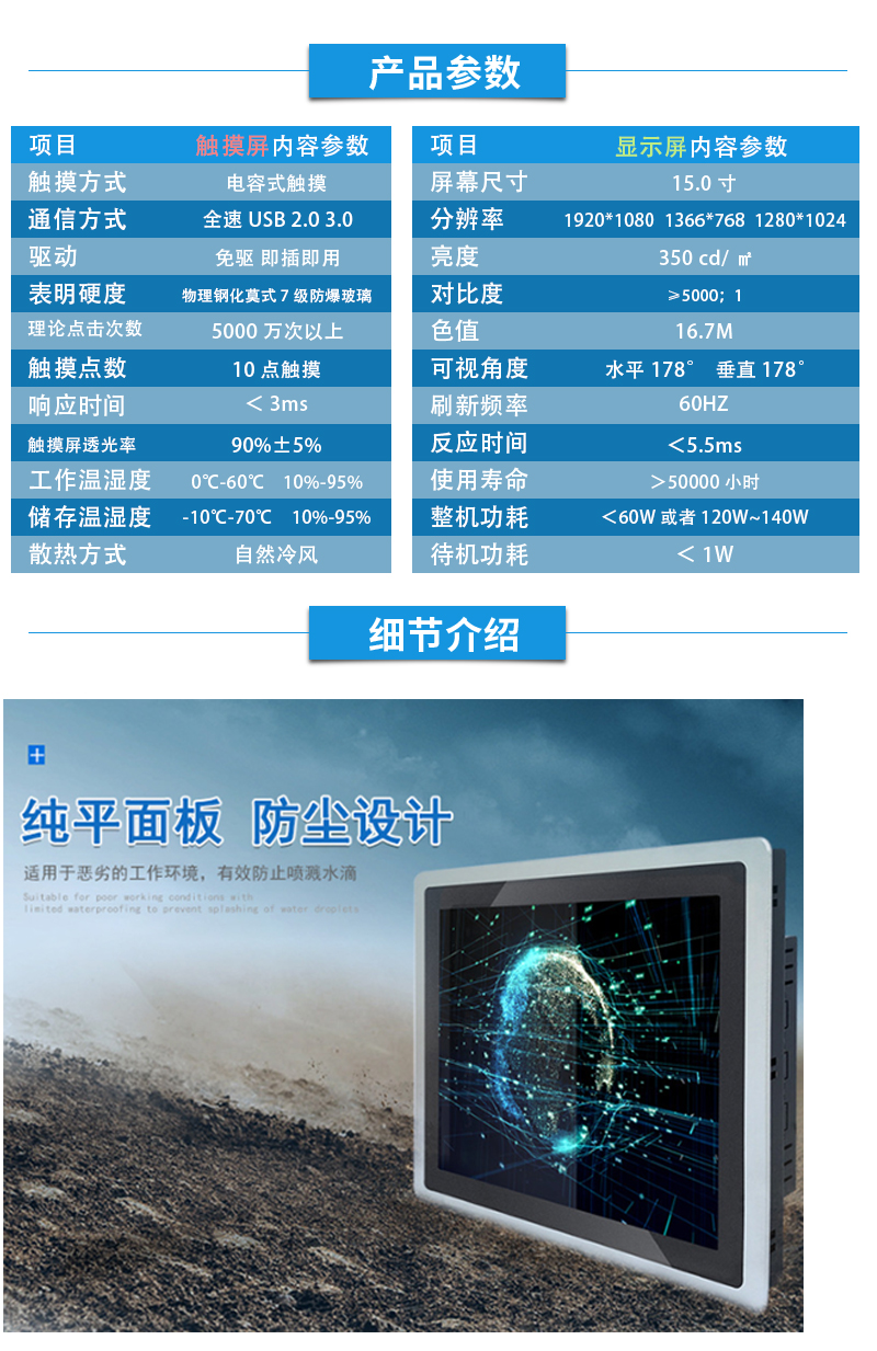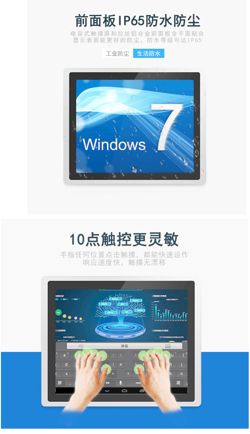 10.1寸TFT顯示屏配X86主板可選I3/I5/I7 1920*1080高清液晶屏方案